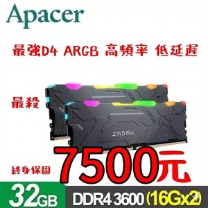 宇瞻Apacer ZADAK MOAB AURA2 DDR4 3600 32G(16Gx2) RGB 桌上型超頻電競記憶體7500元